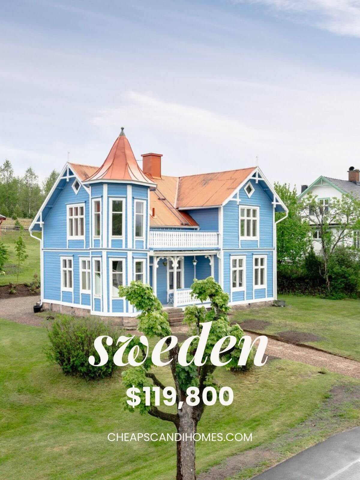 A Blue American-Inspired Villa in Gnosjö, Southern Sweden – $119,800