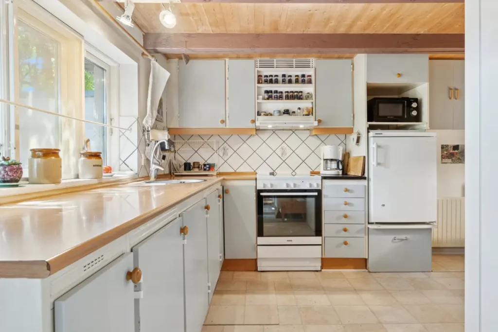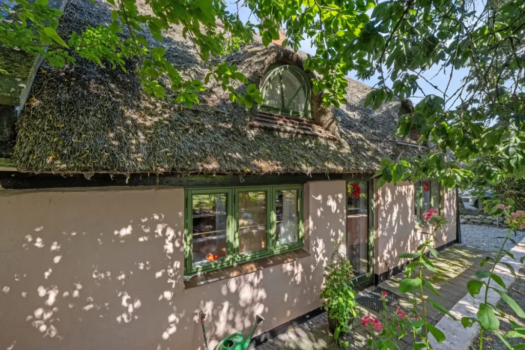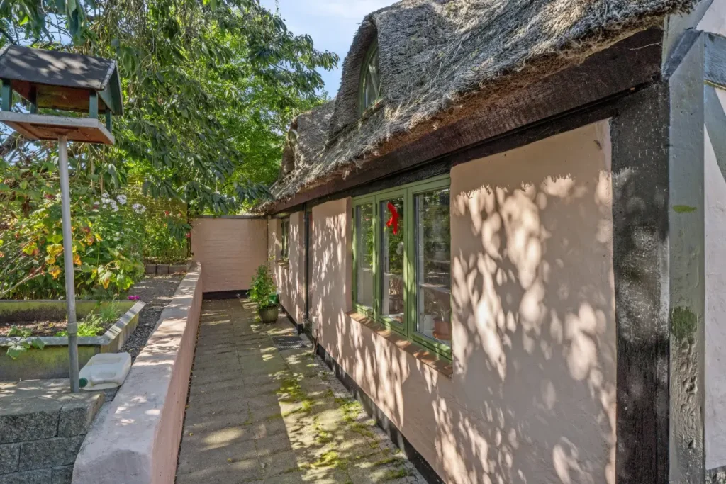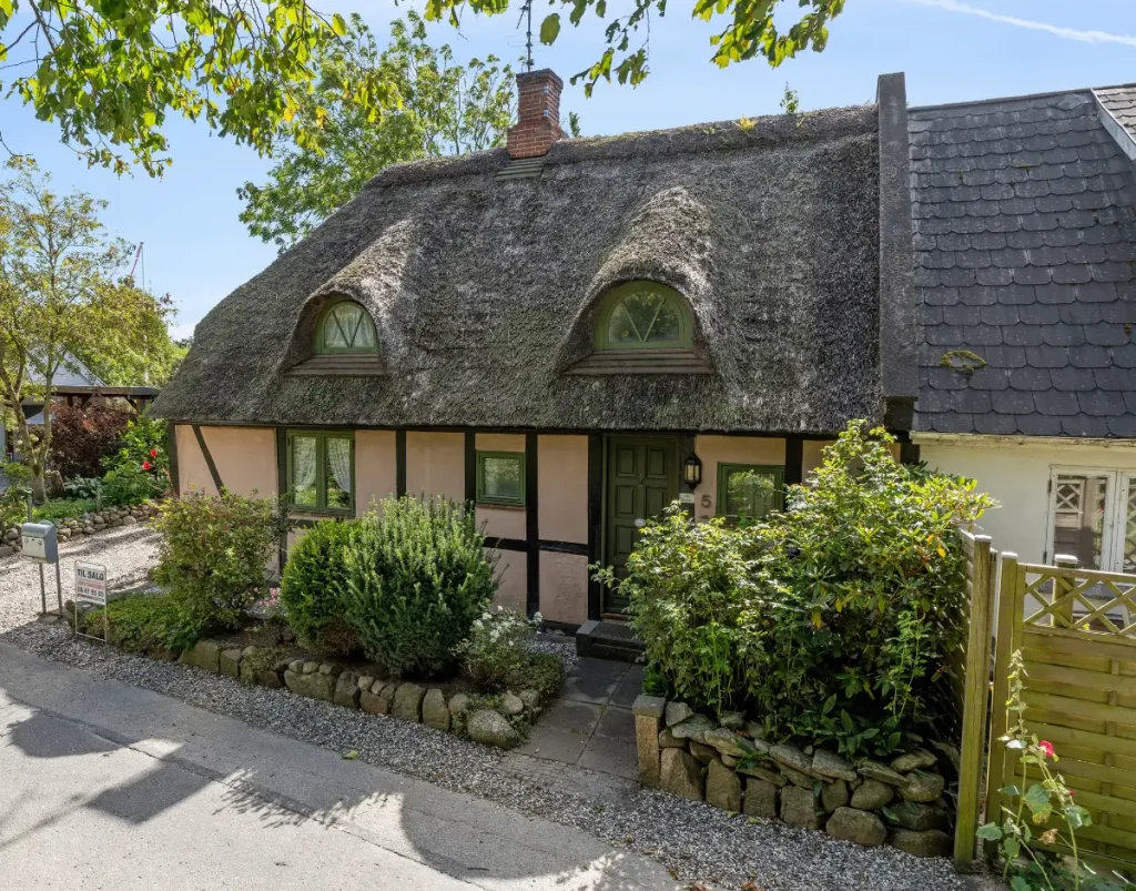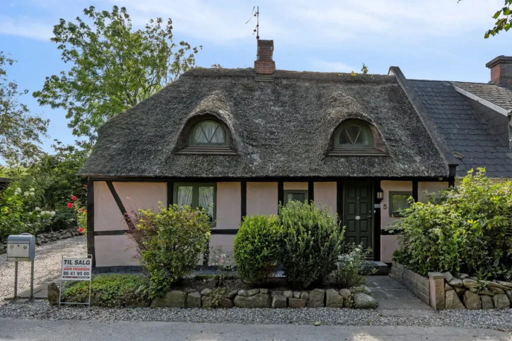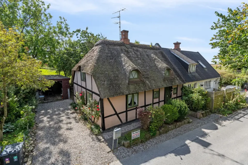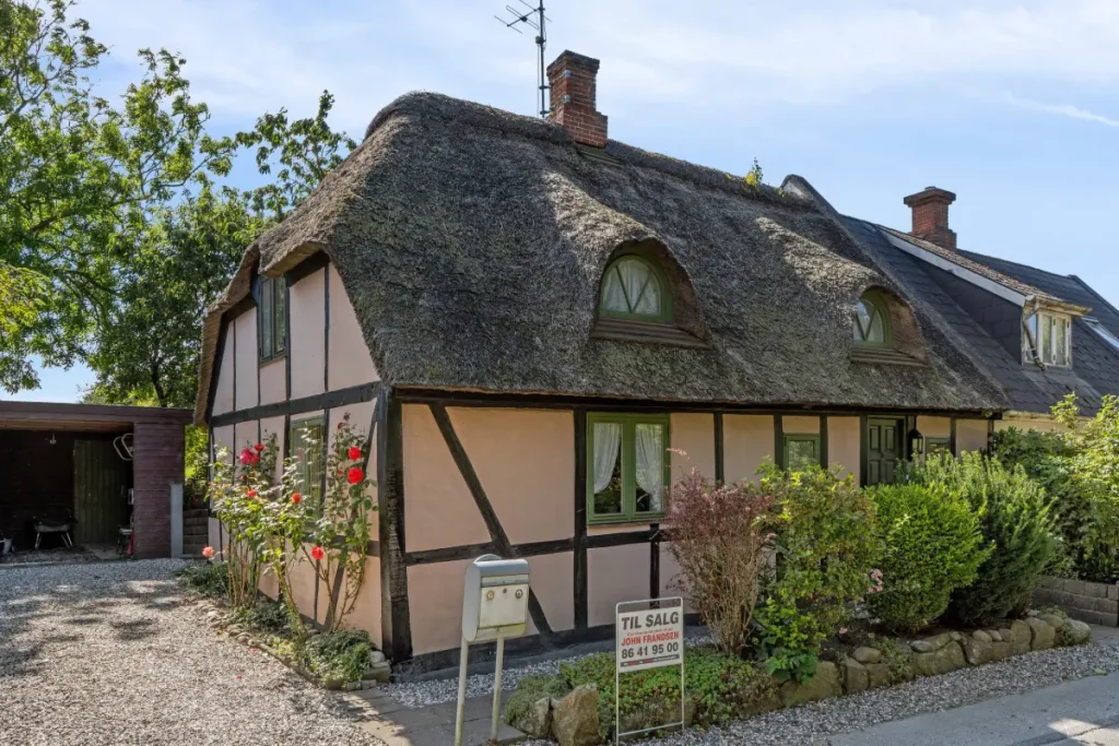 This charming half-timbered semi-detached house with a traditional thatched roof is located in Støvring in North Jutland, approximately 20 kilometers from Aalborg. Originally built in 1880 and later renovated, the home offers 95 m² of living space across two floors—a perfect blend of history, atmosphere, and modern potential.