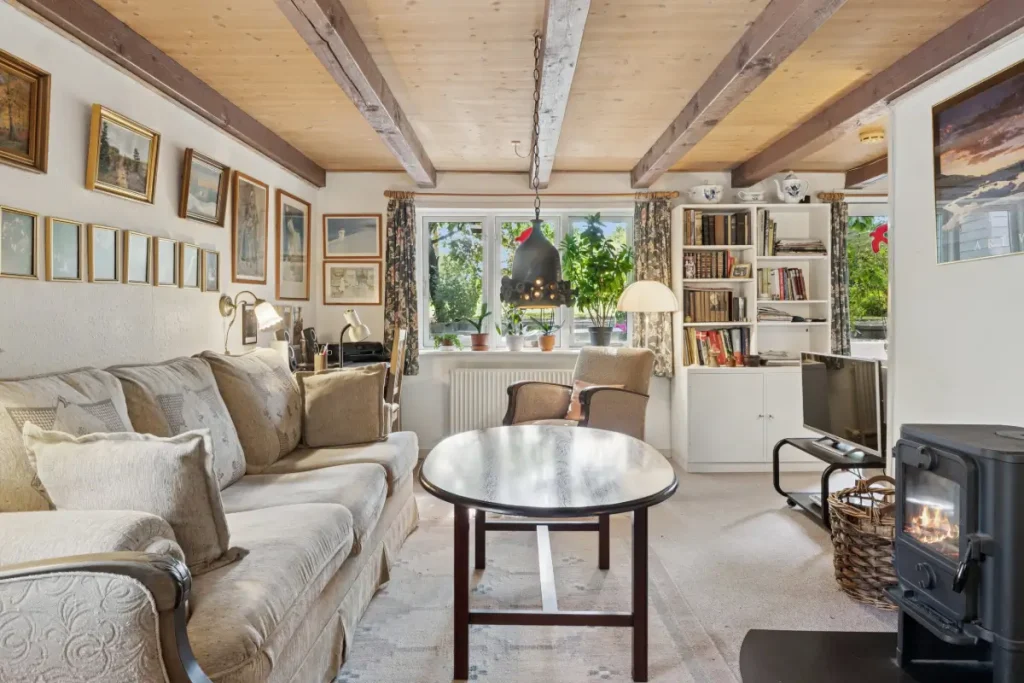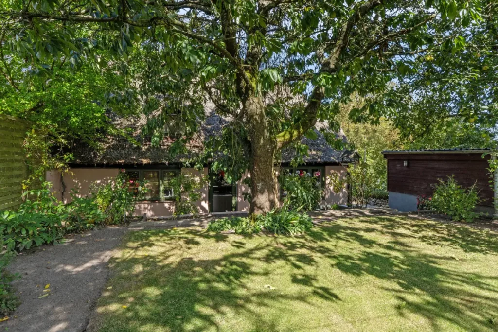 Outside, the property’s half-timbered charm continues, set against a quiet and scenic backdrop. The garden is simple yet cozy, providing opportunities for new owners to landscape and personalize it as they wish.